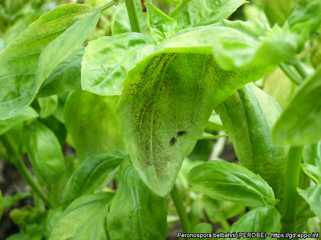 Вредный объект Ложная мучнистая роса базилика, входит в группу Ложная мучнистая роса