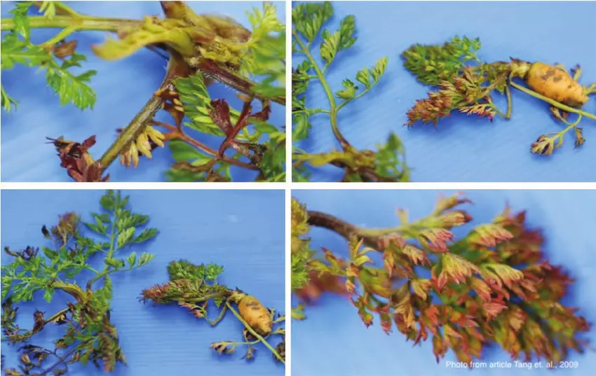 Вредный объект Вирус красных листьев моркови, входит в группу Вирусные заболевания